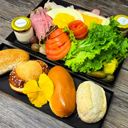 Fresh Sliced Deli Meats, Cheeses, and Hearth Baked Rolls served with Garnishments and Condiments. (Photo represents 2 portions)