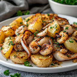 Grilled Baby Squid with Roasted Potatoes