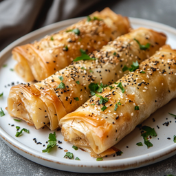 Crispy Baked Filo Dough filled with Meat and Cheese .